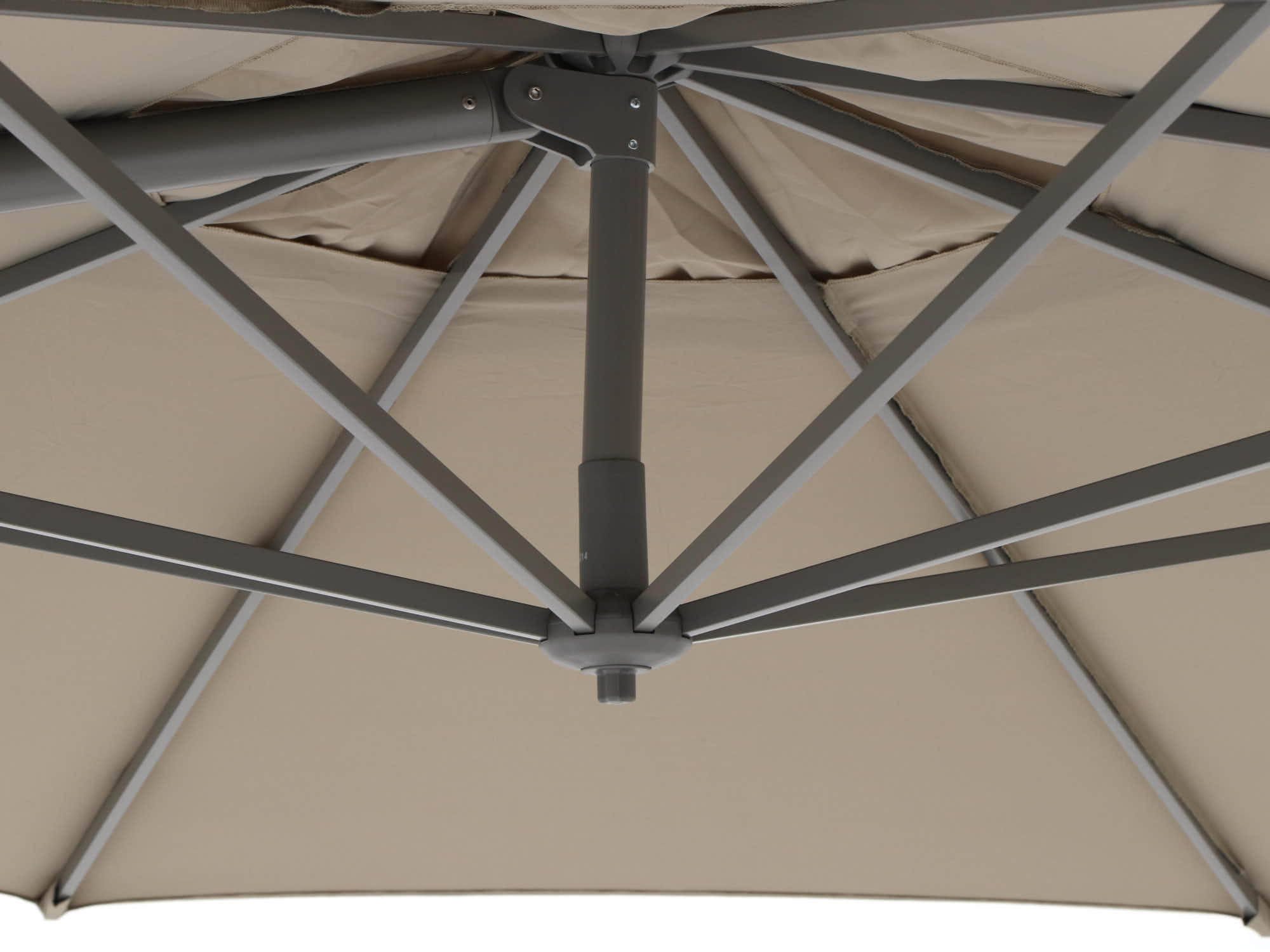 Je draait de parasol in 360 graden makkelijk met de zon mee. Zo zit je de hele dag lekker in de schaduw, zonder je stoel te verplaatsen.