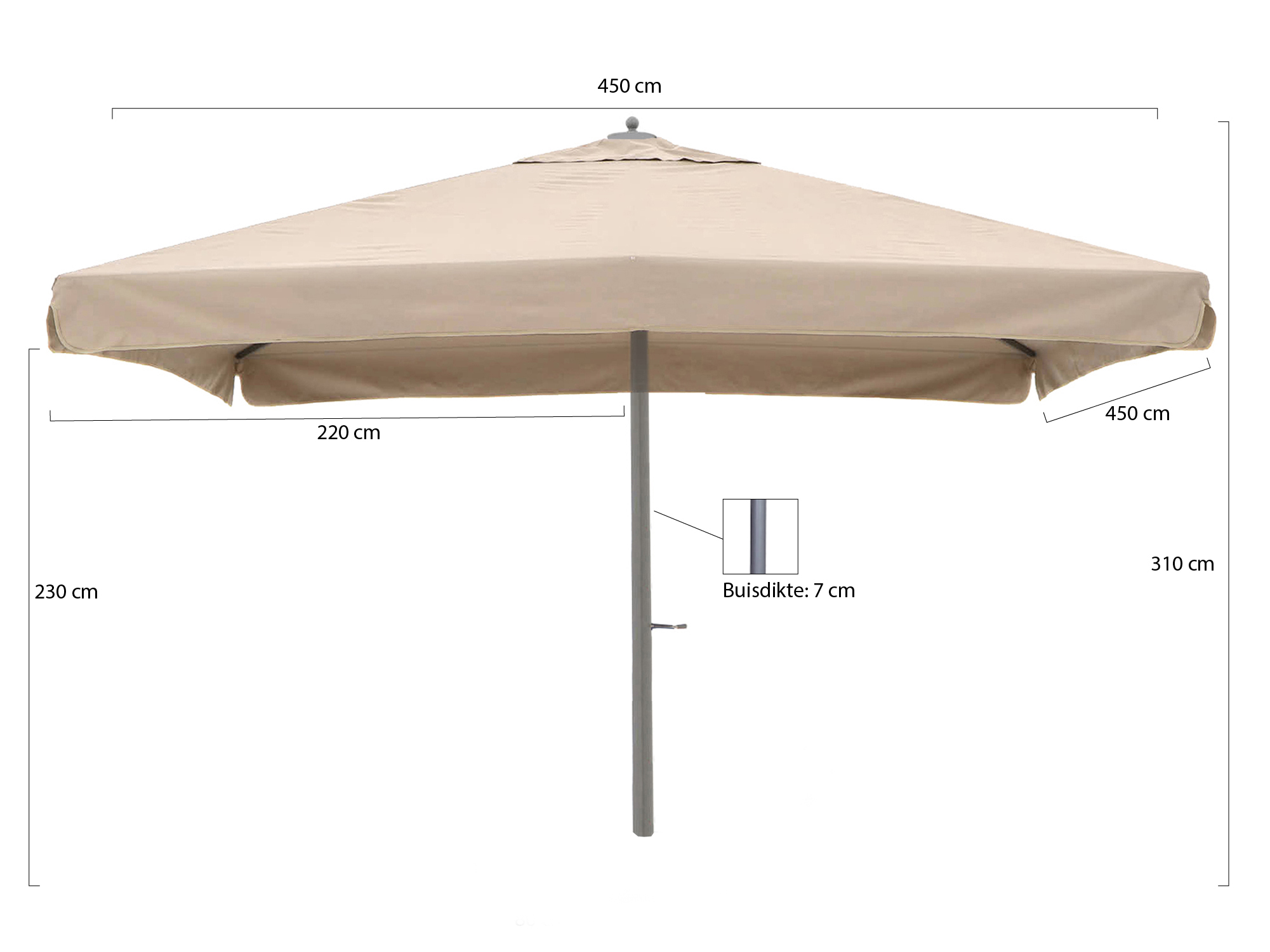 Deze parasol is direct klaar voor gebruik. Je hoeft alleen de mast in de voet te plaatsen en goed vast te zetten. Afhankelijk van het model kan het nodig zijn om de vul- of kruisvoet extra te verzwaren, zodat de parasol stevig blijft staan, ook bij wind. Met de duidelijke handleiding zorg je ervoor dat alles veilig en stabiel staat. Zo kun je direct genieten van fijne schaduw in je tuin!