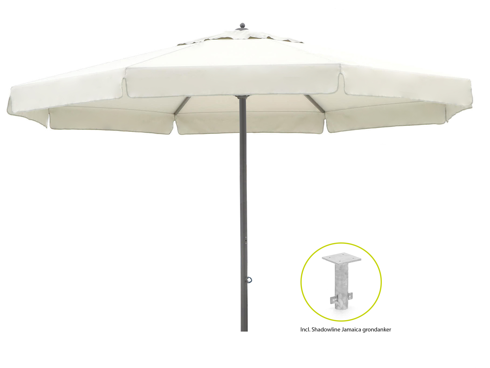 Wordt geleverd met grondanker zodat de parasol stevig blijft staan