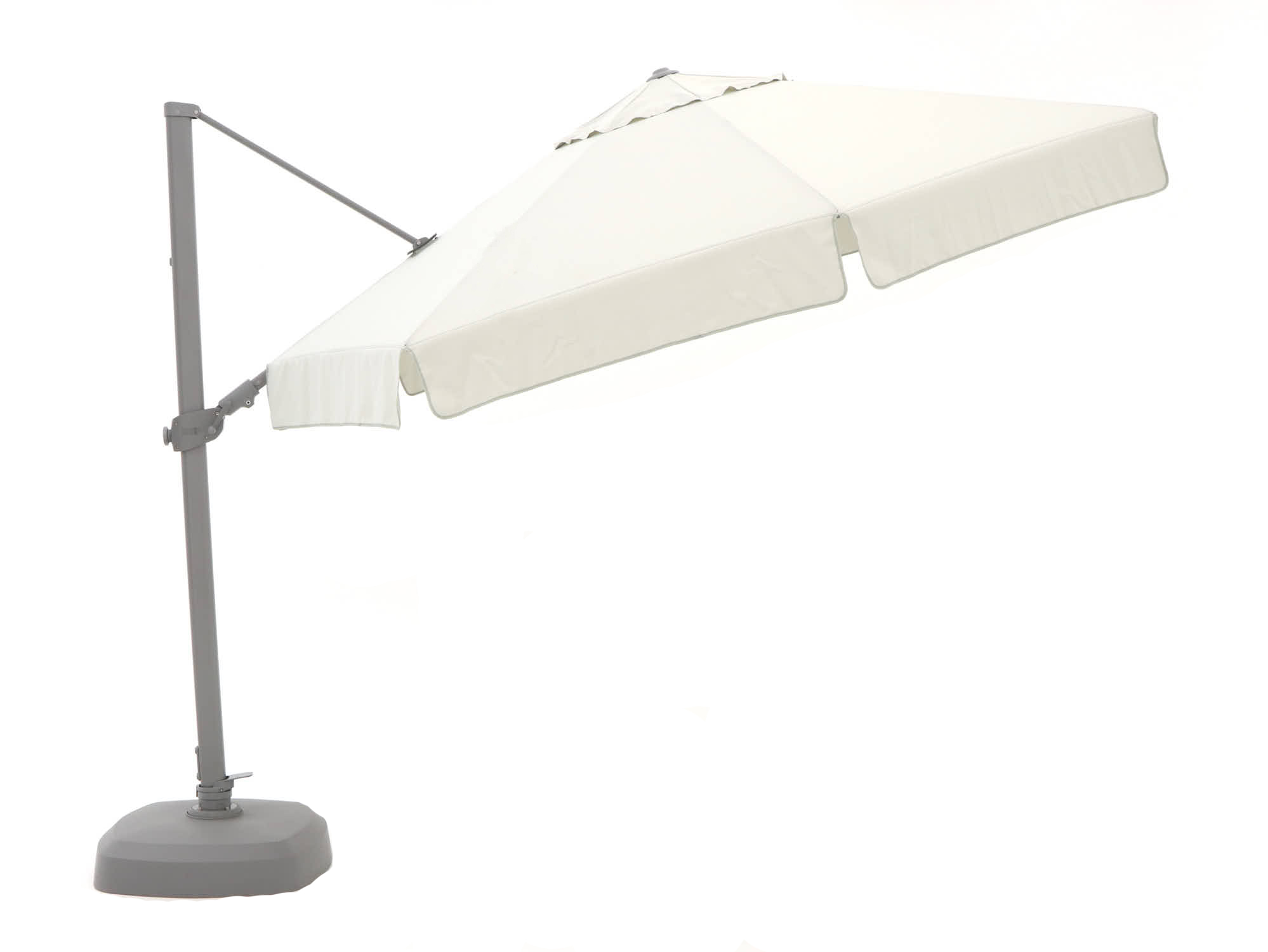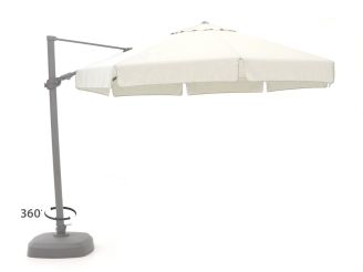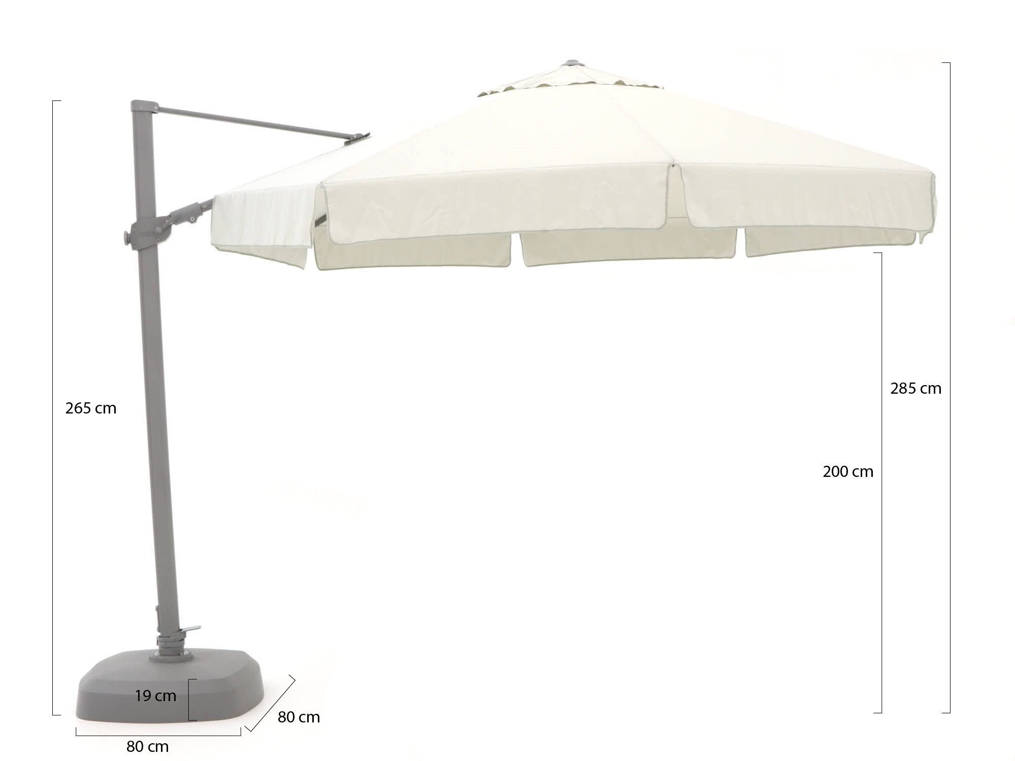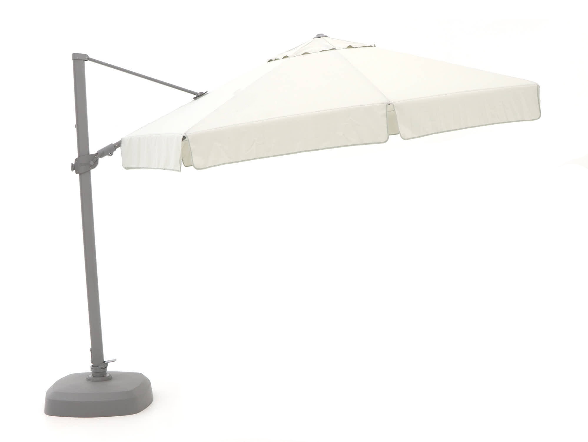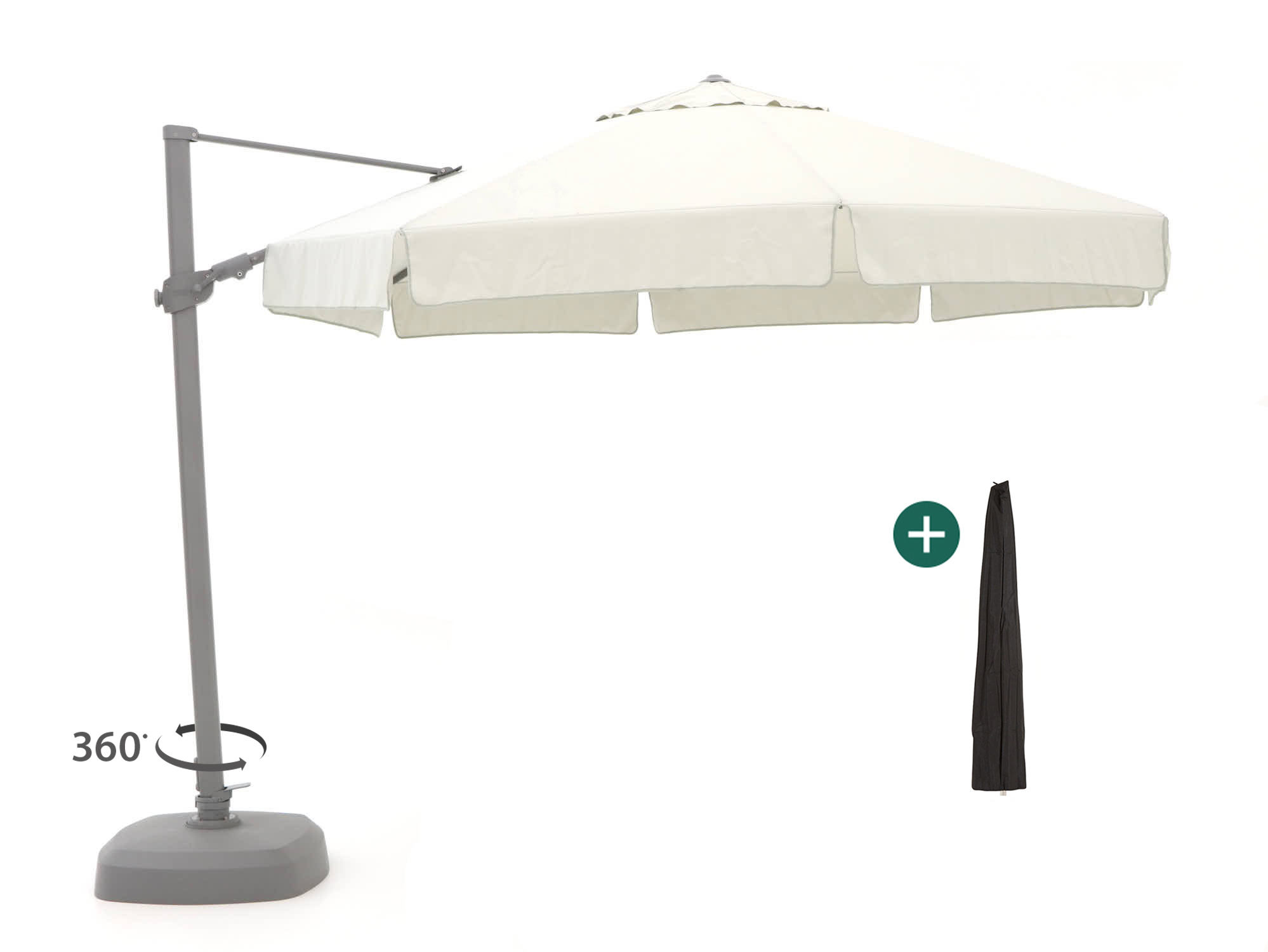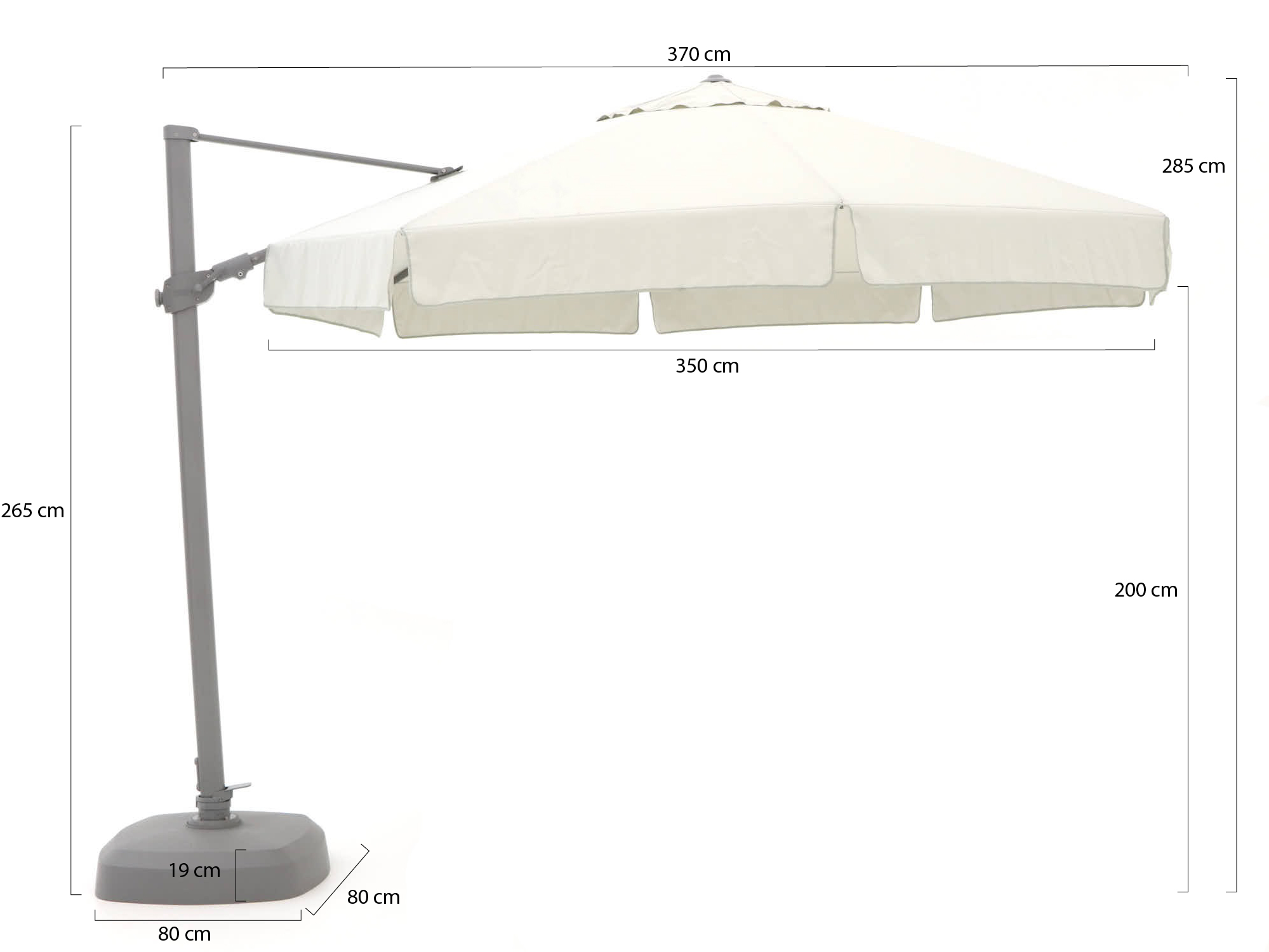 De Shadowline Miami zweefparasol is een stijlvolle en functionele toevoeging aan je tuin of terras. Met een diameter van 350 cm biedt deze parasol ruime schaduw voor jou en je gasten. De parasol is uitgevoerd in een elegante wit-ecru kleur, waardoor hij naadloos in elke buitenruimte past. Dankzij het slimme ontwerp en de hoogwaardige materialen is deze parasol niet alleen praktisch, maar ook een lust voor het oog.