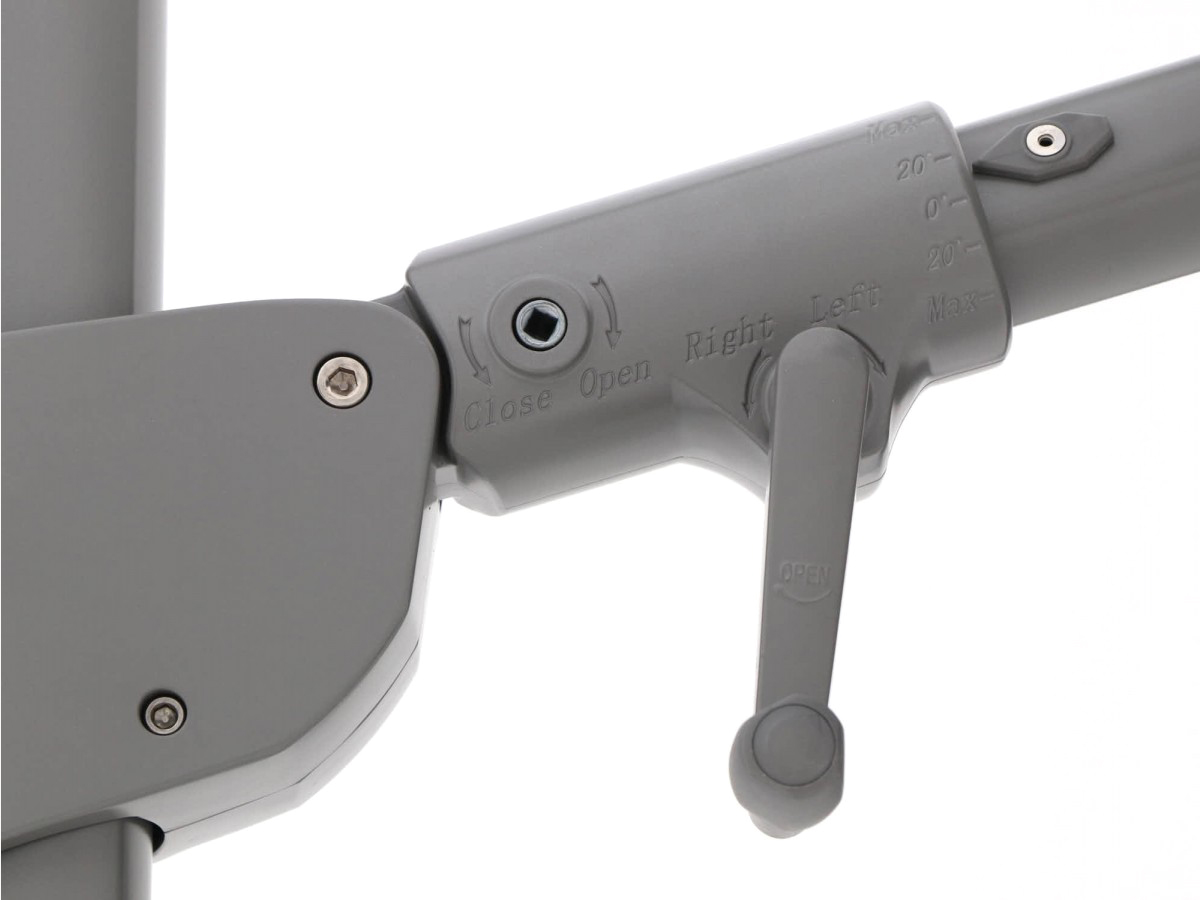 Je draait de parasol in 360 graden makkelijk met de zon mee. Zo zit je de hele dag lekker in de schaduw, zonder je stoel te verplaatsen.