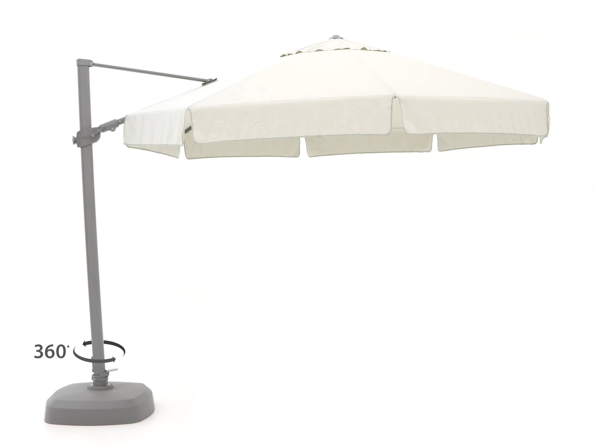 Je kunt de parasol 360 graden draaien, zo heb je altijd schaduw op de juiste plek