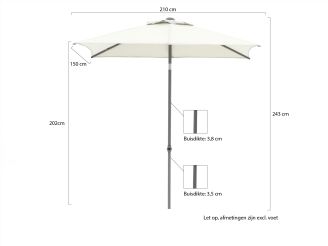 • Push-up mechanisme: Met een eenvoudige beweging stel je de parasol in op de gewenste hoogte. Geen gedoe met kliksystemen, gewoon soepel omhoog of omlaag schuiven.