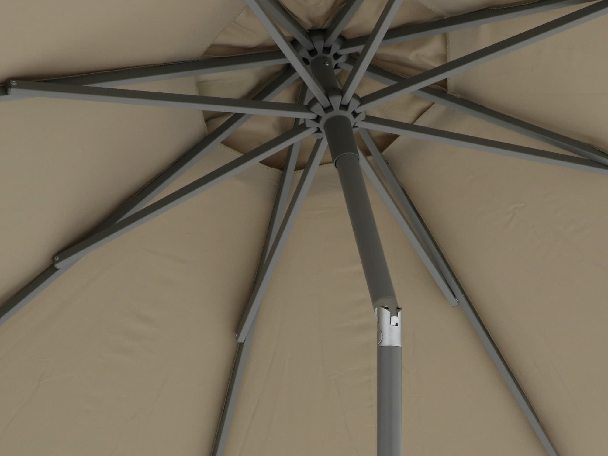 Push-up openingsmechanisme: Met het push-up systeem verstel je de hoogte van het doek traploos. Geen gedoe met vaste standen, maar precies de schaduw die jij wilt. Supermakkelijk!