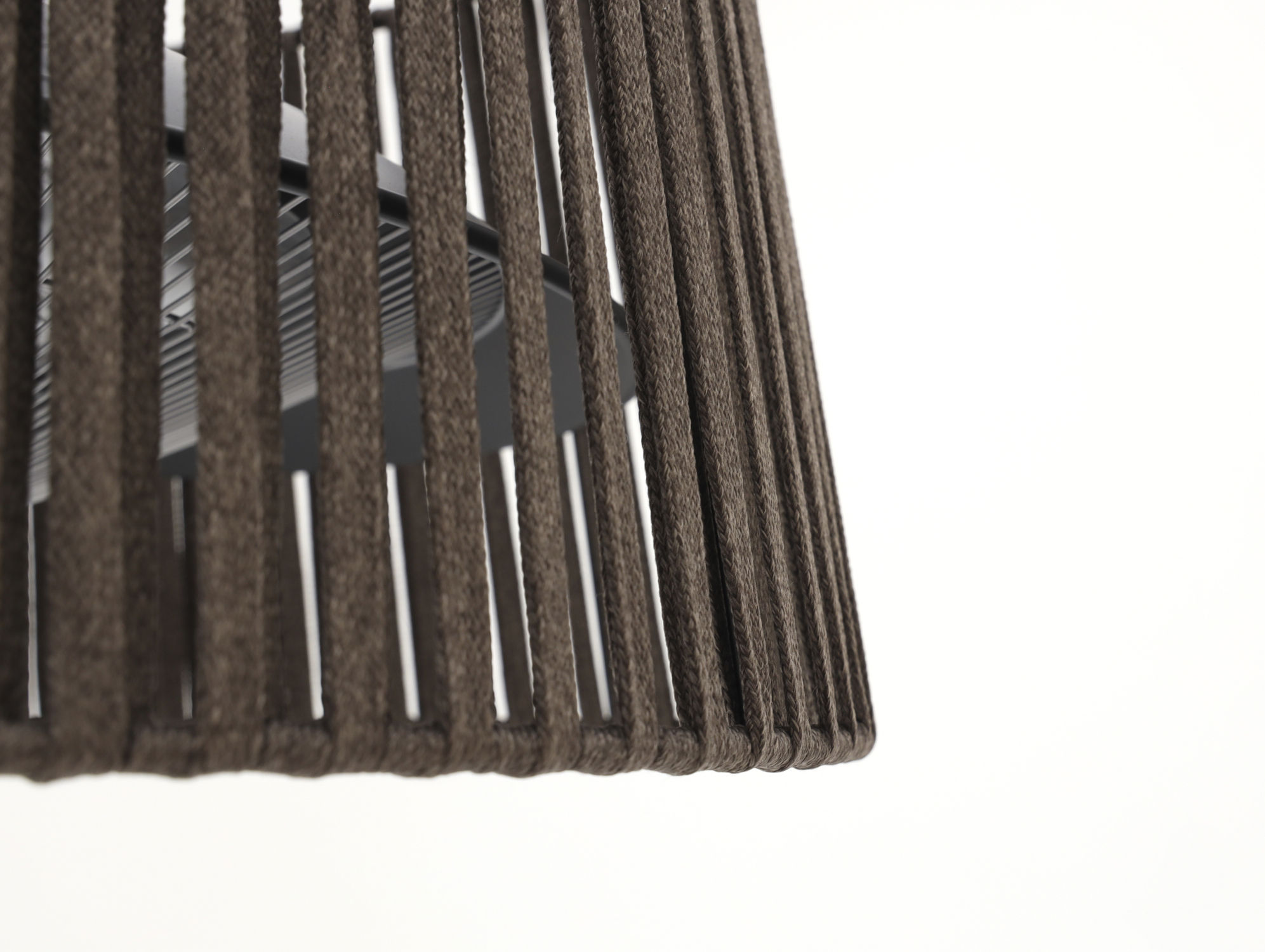 Design: afgewerkt met olefin rope voor een luxe uitstraling, dit is een kleurvaste, slijtvaste kunststofvezel die lang mooi blijft en goed past bij natuurlijke materialen als hout en wicker