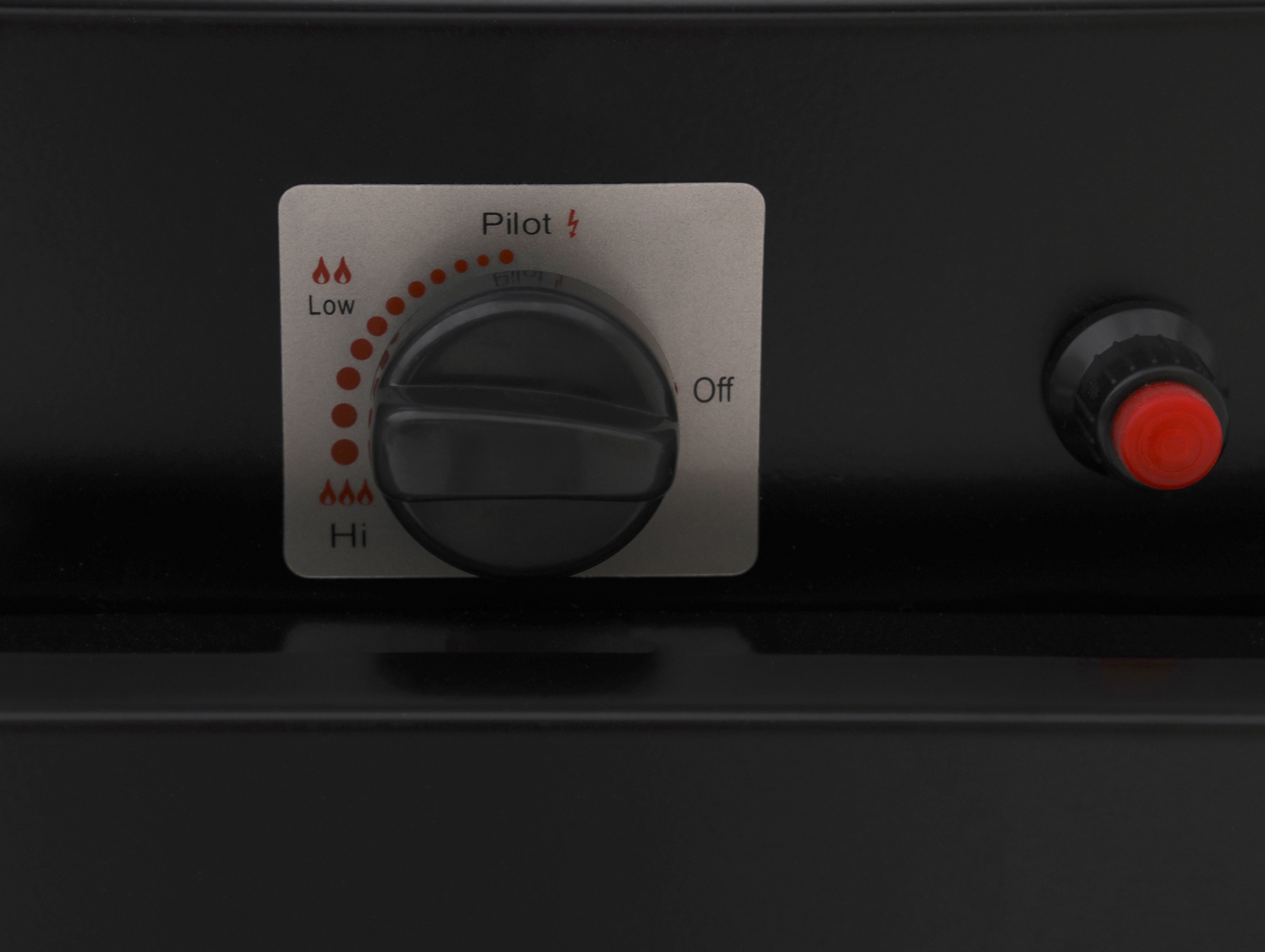 Zelf de vlam regelen: klein voor sfeer, groot voor warmte, met de draaiknop doseer je de gasstroom, begin laag, steek aan volgens de handleiding en draai rustig hoger voor meer warmte.