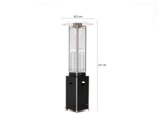 De Sunred Flame Torch Gas is een terrasverwarmer die direct in het oog springt. Met zijn hoge, slanke vorm en de combinatie van glas, staal en aluminium is het een stijlvolle toevoeging aan je tuin of terras. De vlam brandt in een glazen buis, zo is hij goed zichtbaar en minder gevoelig voor wind, terwijl jij er niet direct bij kunt. Hij werkt op propaangas, je hebt dus geen stopcontact nodig, en door de hoogte verspreidt de warmte prettig rondom. Ook in de horeca is dit een populaire keuze, de heater brengt niet alleen warmte, maar ook een levendig vlammenspel dat extra sfeer geeft. De gasfles (niet inbegrepen) plaats je netjes uit het zicht achter een deurtje, zodat het geheel er verzorgd uitziet. Gebruik hem altijd buiten of in een zeer goed geventileerde ruimte en zet hem op een stabiele, vlakke ondergrond.