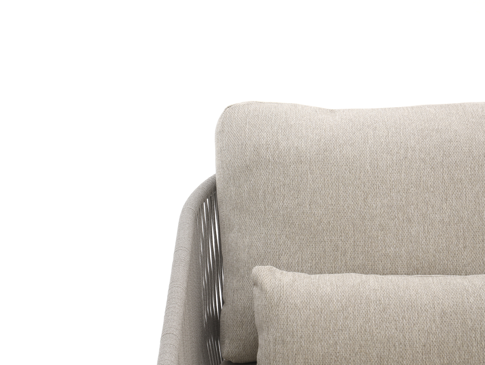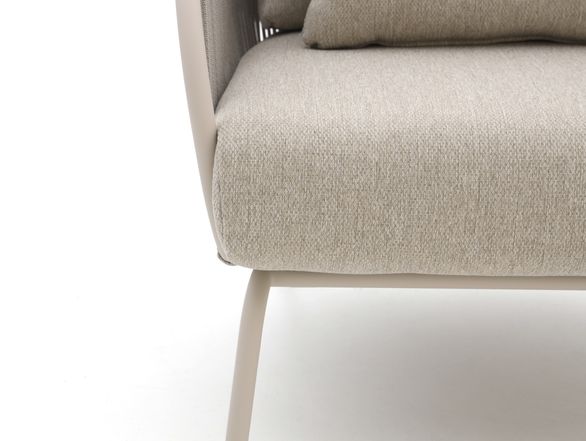 De SUNS Dolce/Nova stoel bank loungeset is een compacte stoel bank set voor 4 personen, ideaal als je lekker wilt loungen maar ook wilt kunnen eten aan tafel. Het aluminium frame is licht en kan niet roesten, waardoor je de set makkelijk verschuift en hij gewoon buiten kan blijven staan. Het sintered stone tafelblad is hard en slijtvast, dus je zet er zonder zorgen borden, glazen en een pan met eten op. De zachte kussens in beige tinten zorgen ervoor dat je lang comfortabel zit, van de eerste koffie tot de laatste borrel.