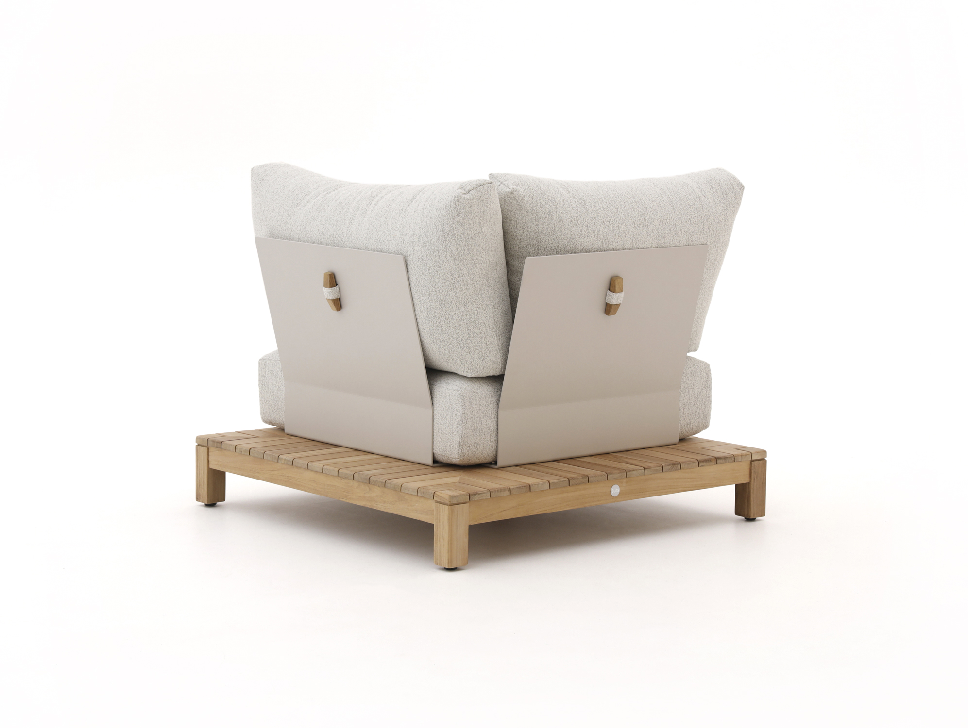 • Teakhouten frame: Het sterke teakhout kan het hele jaar door buiten staan, zodat je niet steeds alles hoeft te verplaatsen bij een bui.