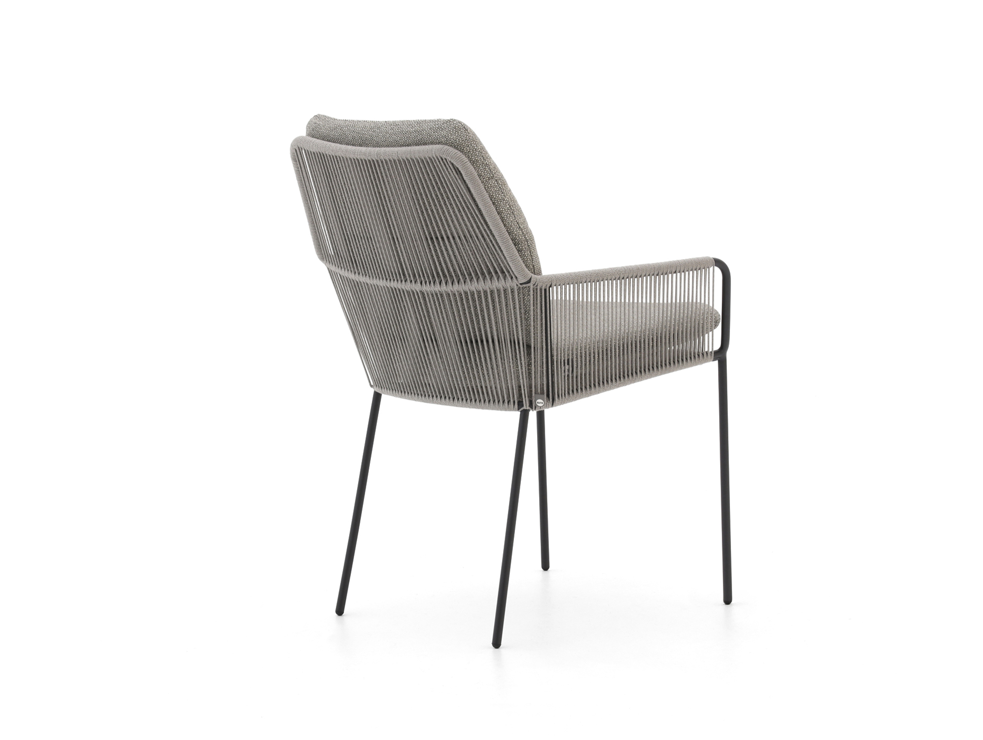 De SUNS Punta dining tuinstoel is een moderne tuinstoel voor wie graag lang en relaxed aan tafel zit, buiten én binnen. De zitting van rope met bijpassend kussen vormt zich naar je lichaam, waardoor je prettig zit tijdens een etentje of een borrelavond. Het aluminium frame is stevig, kan niet doorroesten en is licht van gewicht, zodat je de stoel makkelijk verschuift of verplaatst als je je terras anders wilt indelen. Dankzij het grijze frame, rope en kussens combineer je deze stoel eenvoudig met verschillende tuintafels, van hout tot aluminium.