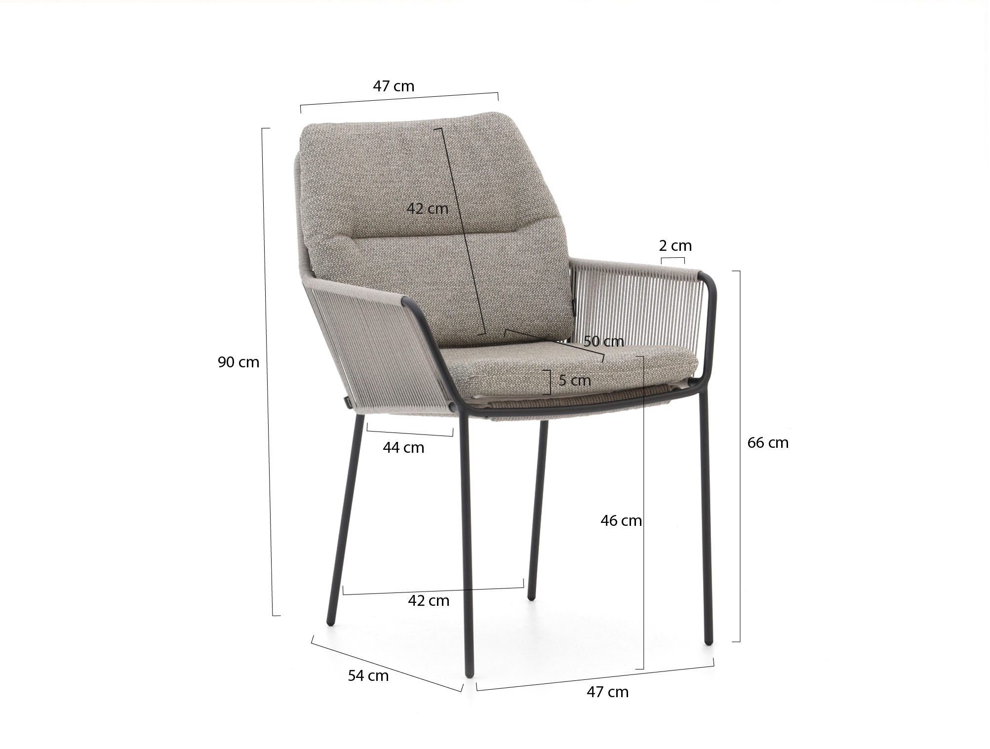 • Dining zithoogte: ideaal om ontspannen aan een tuintafel te eten en natafelen