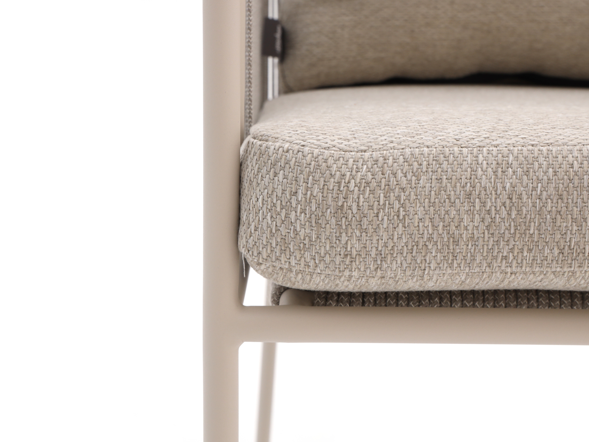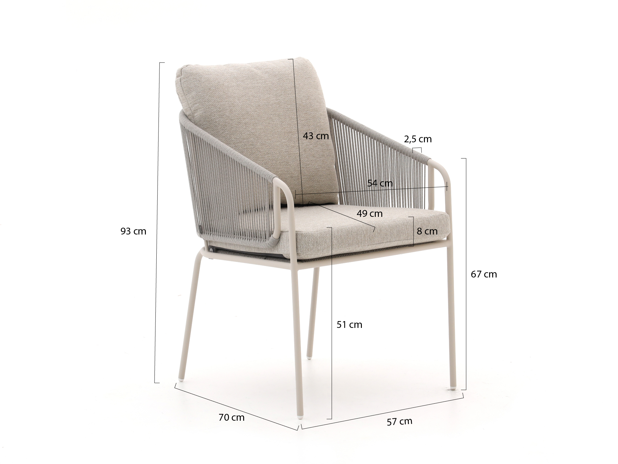 Rope zitting: De zitting van de stoelen is gemaakt van rope, wat niet alleen comfortabel zit, maar ook een moderne uitstraling geeft. Bovendien is het materiaal bestand tegen verschillende weersomstandigheden.