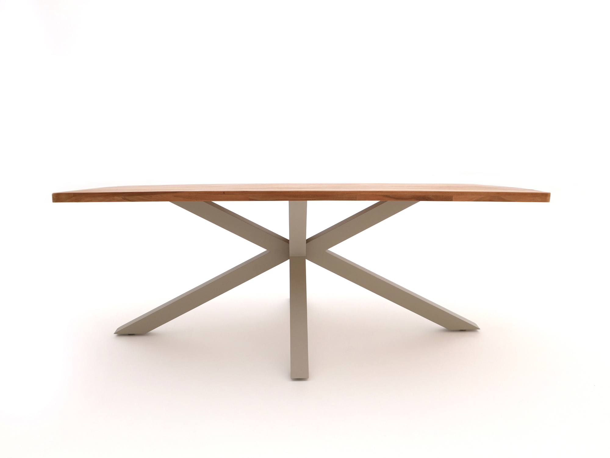 Deens ovaal teakhouten tafelblad: Dit tafelblad combineert de rechte lijnen van een rechthoek met de gezelligheid van een ovale vorm. Ideaal voor lange avonden tafelen zonder scherpe hoeken.