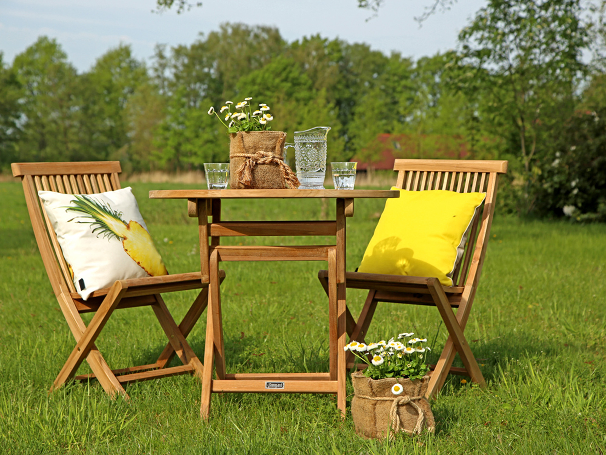 De Sunyard Country dining tuinstoel inklapbaar beige is een tuinstoel voor wie graag flexibel zit aan de tuintafel en de stoelen na het eten weer snel wil wegzetten. Je klapt deze stoel makkelijk in, zodat hij weinig ruimte inneemt in je schuur of onder de overkapping. De zitting en het frame zijn volledig van teakhout, een sterk natuurproduct dat tegen alle weersomstandigheden kan. De messing scharnierpunten geven een stevige, soepele beweging bij het in en uitklappen, wel zo fijn als je de opstelling in je tuin vaak verandert.