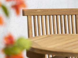 Het teakhout is duurzaam en weerbestendig, ideaal voor buitengebruik