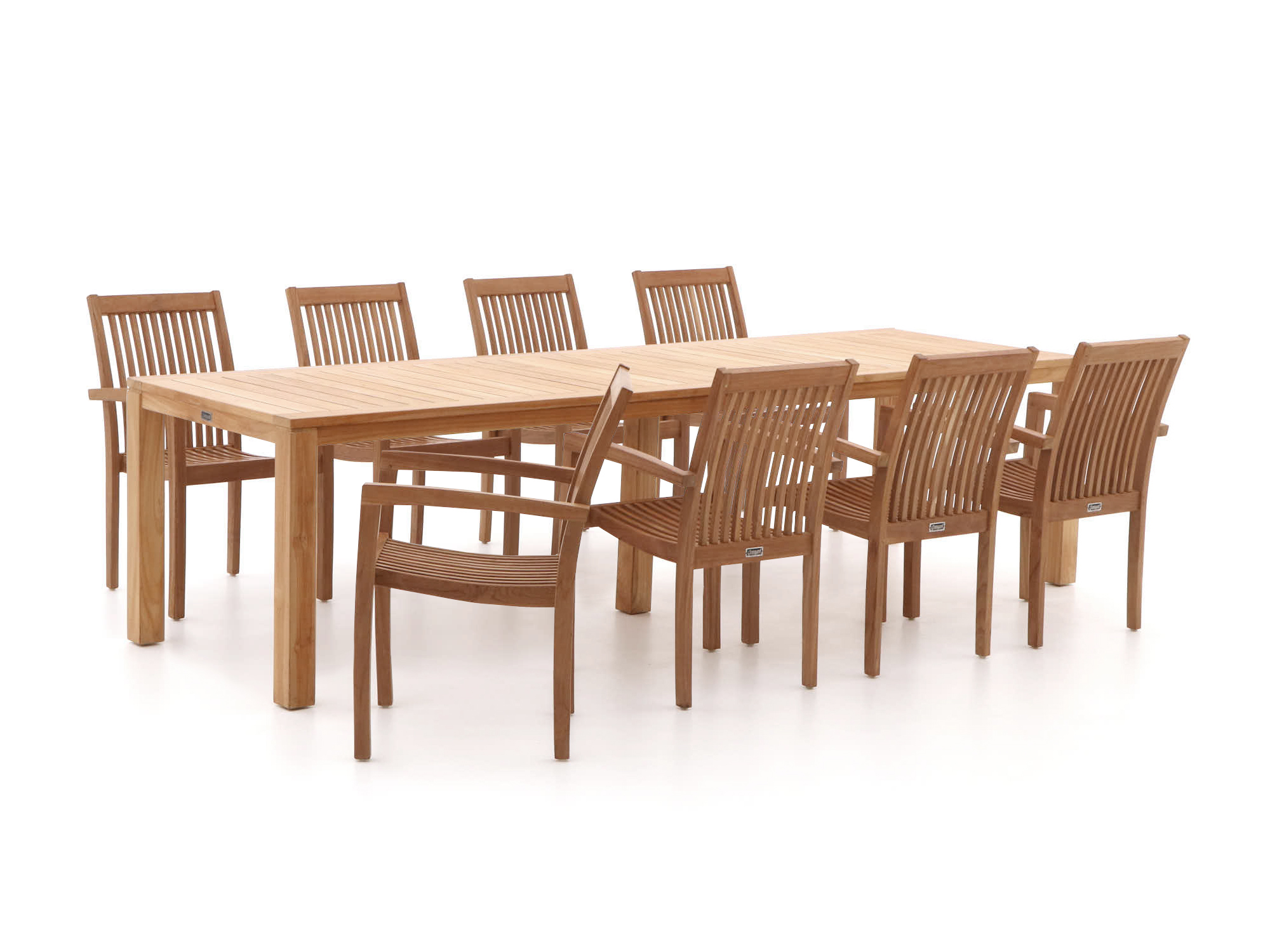 Als je van gezellig buiten eten houdt, dan is deze Sunyard Jakarta/Oxford dining tuinset met plek voor acht personen echt iets voor jou. Gemaakt van prachtig natural teak, straalt deze set een warme en uitnodigende sfeer uit. Het teakhout is niet alleen mooi, maar ook sterk en bestand tegen alle weersomstandigheden. En het beste? De stoelen zijn stapelbaar, dus als je ze even niet nodig hebt, berg je ze makkelijk op. Ideaal voor die lange zomeravonden met vrienden en familie.