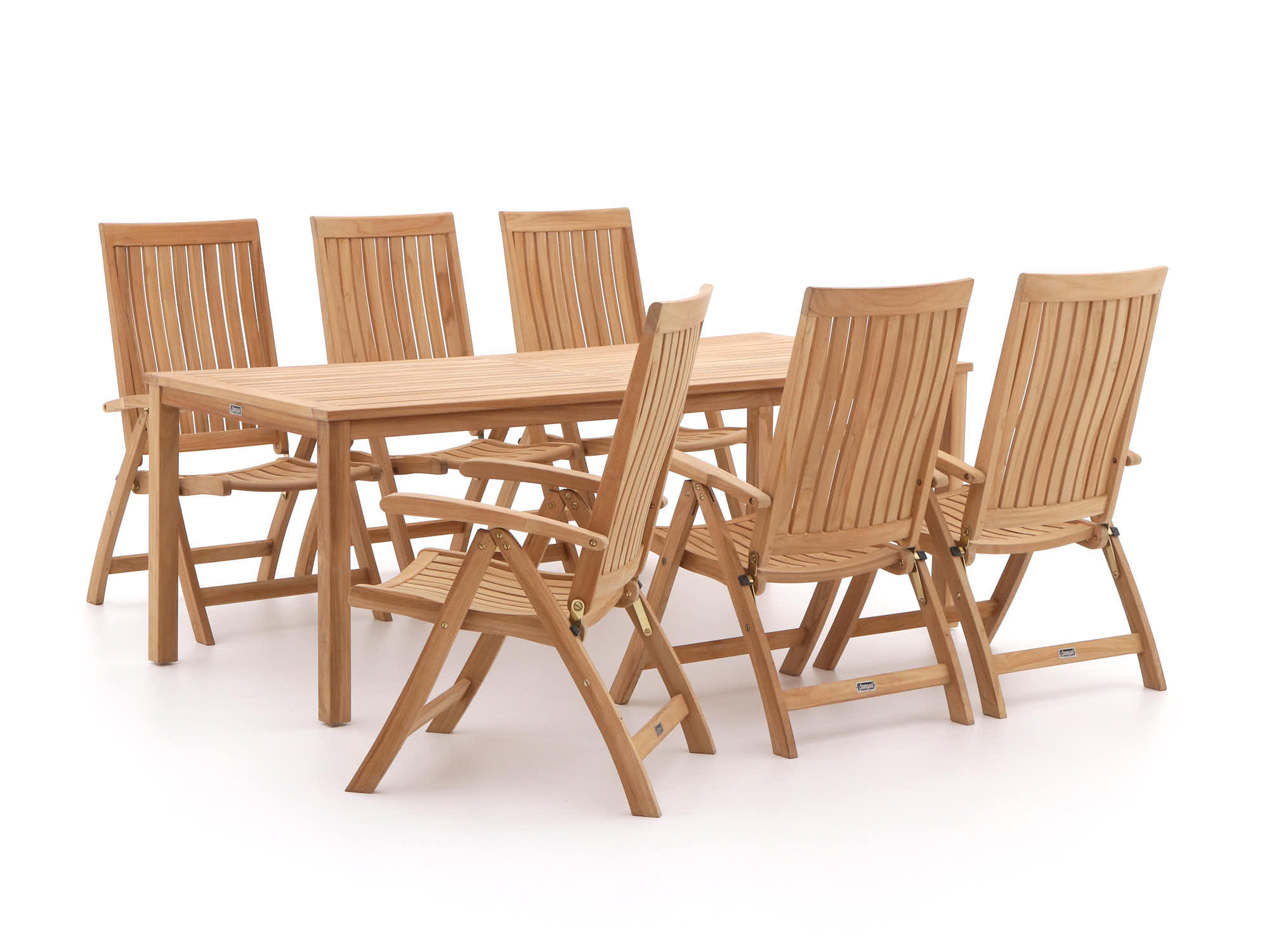 De Sunyard Oxford/Liverpool dining tuinset is een prachtige aanvulling voor elke tuin. Deze 7-delige set, uitgevoerd in natuurlijk teakhout, biedt een warme en uitnodigende uitstraling. Teakhout is niet alleen stijlvol, maar ook bestand tegen alle weersomstandigheden, waardoor je jarenlang plezier hebt van deze set. De verstelbare stoelen zijn een echte uitkomst; je kunt ze volledig naar wens aanpassen voor optimaal comfort tijdens lange zomeravonden. Met deze set creëer je een gezellige plek waar je met vrienden en familie kunt genieten van heerlijke maaltijden en goede gesprekken. Dus, trek die fles wijn open en geniet van de lange avonden in je tuin!