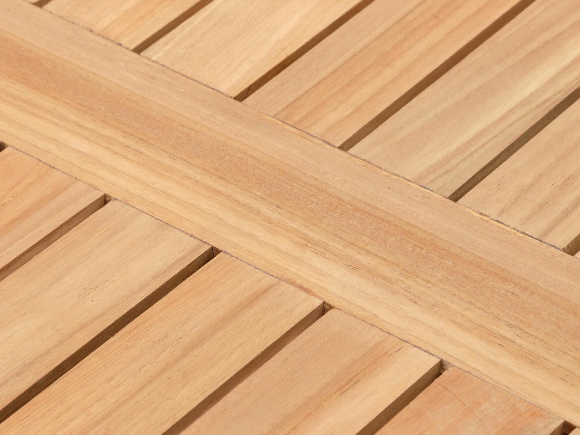 Volledig teakhout: Het teakhout is bestand tegen alle weersomstandigheden en gaat jarenlang mee, perfect voor buitengebruik!