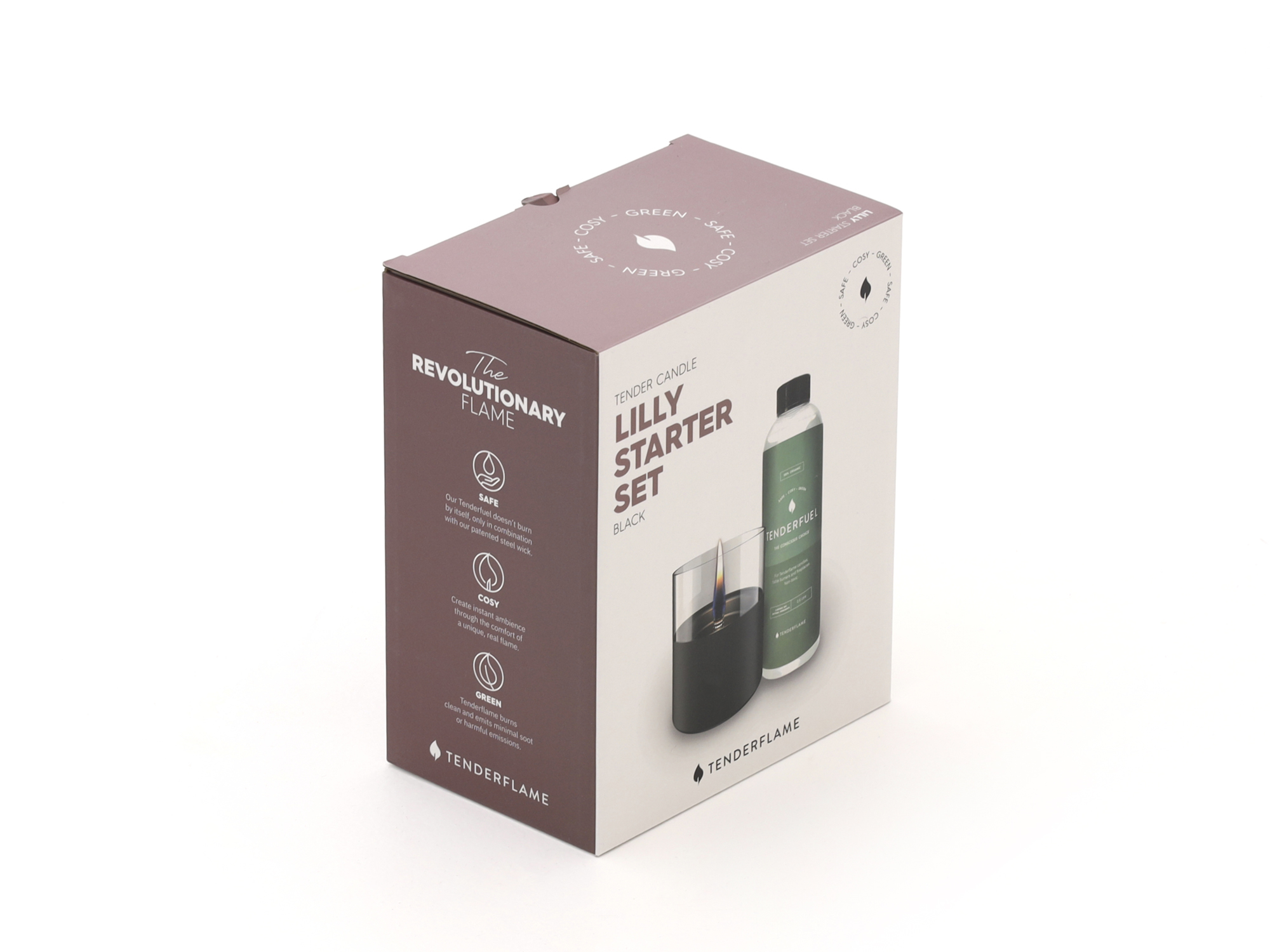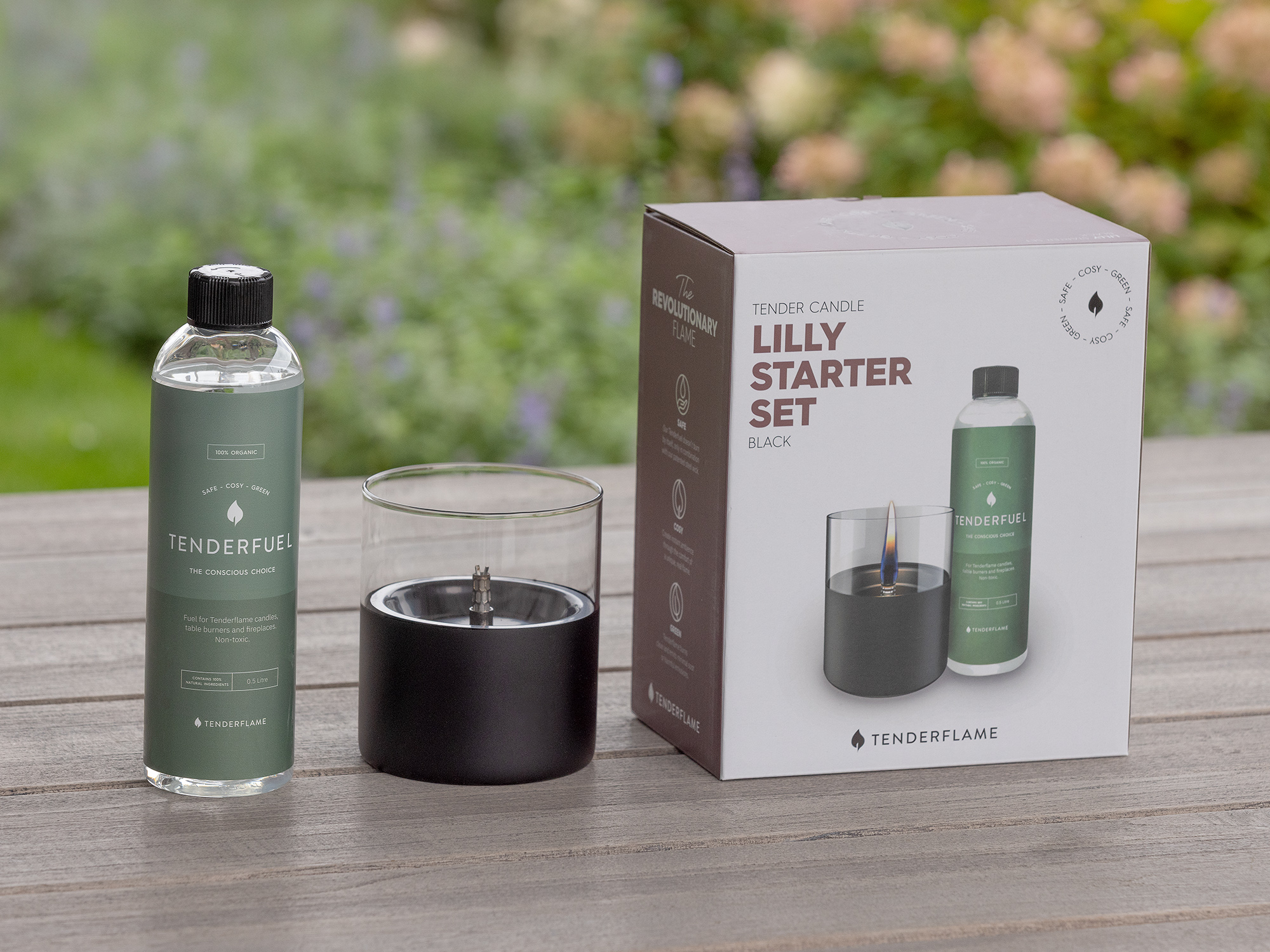 De Tenderflame Lilly 10 is een compact en stijlvol sfeerlicht, geleverd als complete giftset. Met zijn doorsnede van 10 cm en 11,5 cm hoog past hij perfect op tafel, in de vensterbank of op het dressoir. Dit sfeerlicht werkt op Tenderfuel: een slimme brandstof die zonder lont niet ontvlambaar is. Dat voelt direct veiliger dan bio ethanol of lampenolie. Bovendien brandt Tenderfuel geurloos, roetvrij en mooi schoon. Zo geniet je van een echte vlam, zonder gedoe. Ook leuk: dankzij de giftverpakking geef je de Lilly 10 zo cadeau.