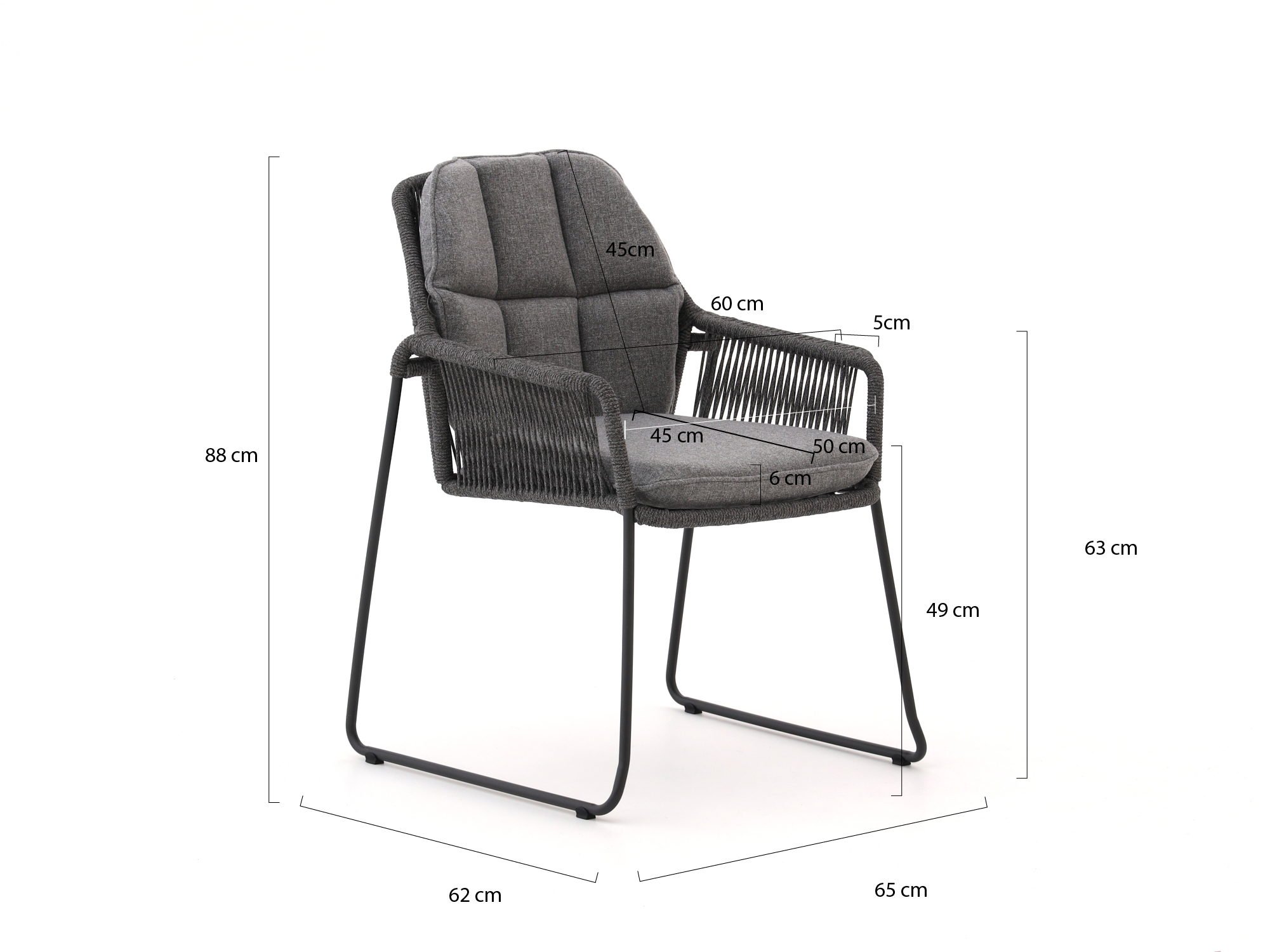 De Tierra Outdoor Rivera dining tuinstoel grijs is een fijne tuinstoel voor als je graag lang aan tafel zit, zonder kolossale stoelen op je terras. De combinatie van een metalen frame met rope zitting geeft je stevige steun, terwijl het touw licht meeveert als je gaat zitten. Het meegeleverde kussen zorgt voor extra zachtheid, vooral als je lang natafelt of buiten werkt aan je tuintafel. Het gecoate metalen frame is sterk en kan niet doorroesten, terwijl rope snel opdroogt na een regenbui en niet heet wordt in de volle zon. Zoek je een moderne, slanke stoel waar je soepel aan en van tafel schuift, dan zit je met deze Rivera goed.